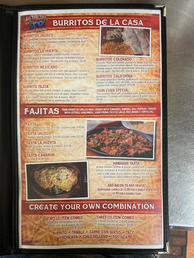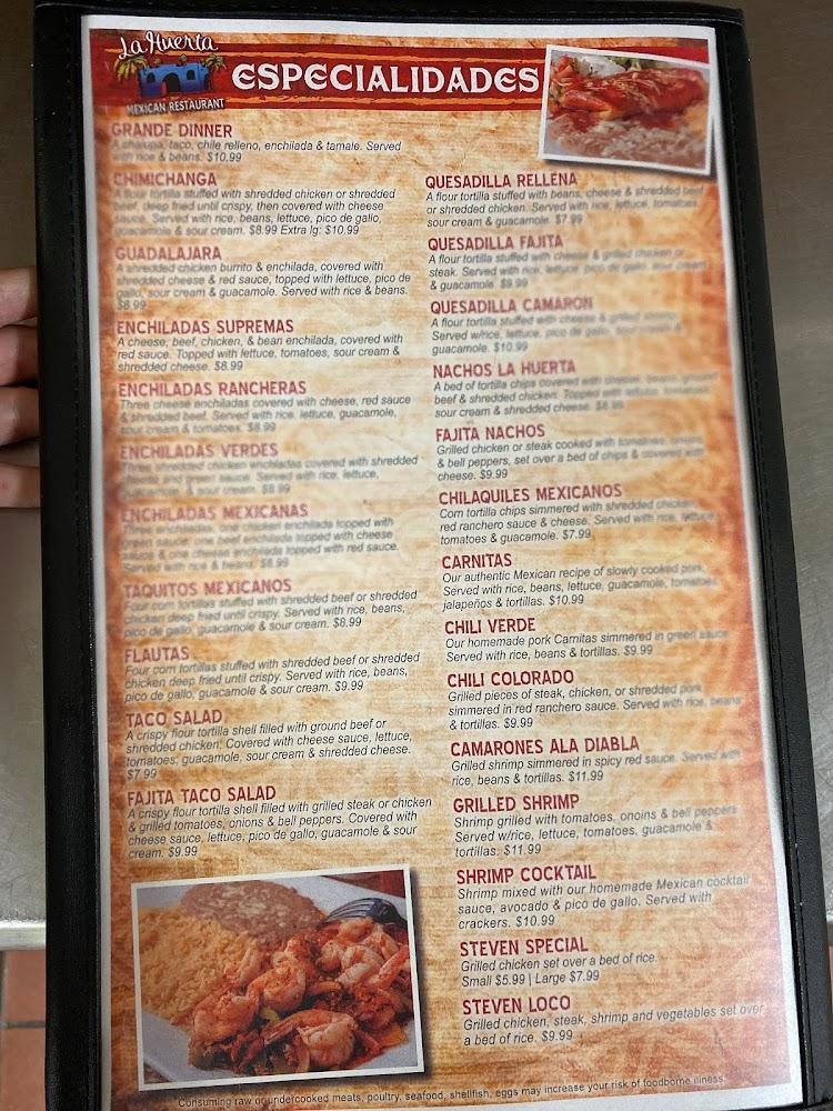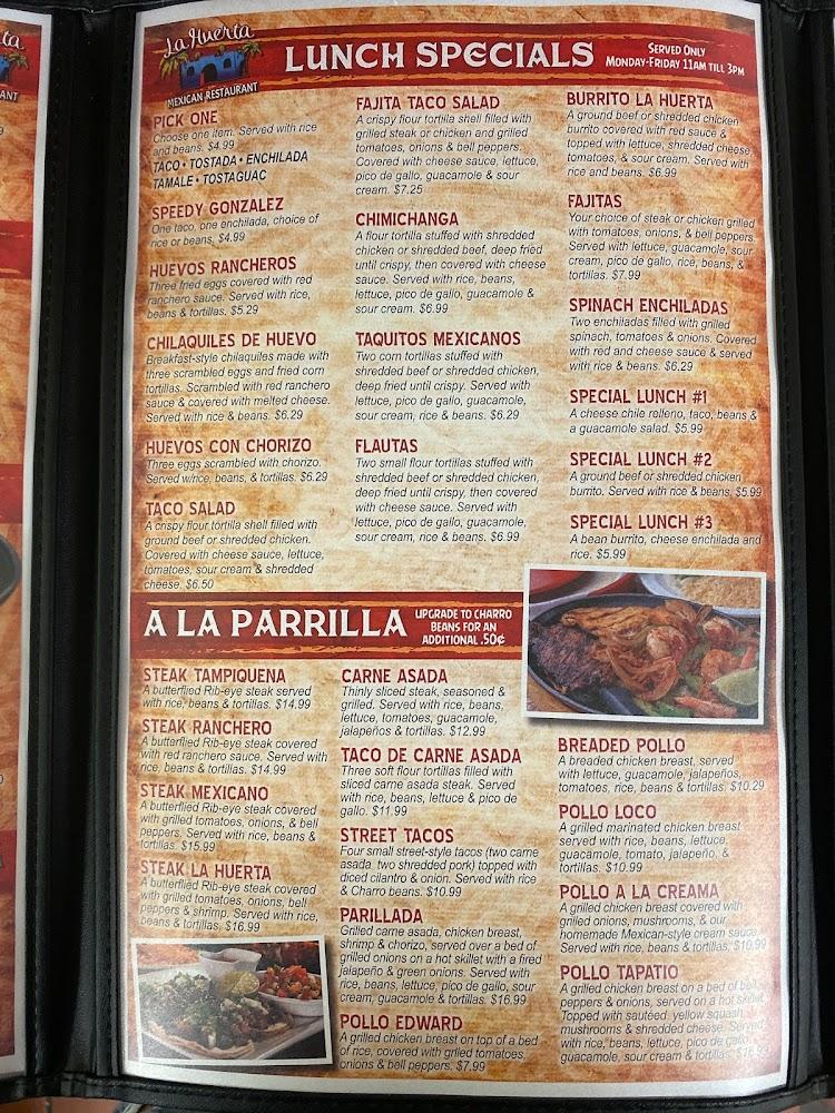 La Huerta's menu is an extensive journey through traditional Mexican flavors. It features 106 items, ensuring there's something for every taste. From appetizers like cheese dip and guacamole to hearty main courses, variety reigns. Fajitas and steak dishes stand out for their bold flavors and generous portions. Vegetarian options cater to diverse dietary needs with dishes like burritos and fajitas. Families can enjoy a dedicated children's menu with favorites like tacos and quesadillas. Desserts like flan and fried ice cream provide a sweet ending to every meal. The mix of traditional offerings and local specialties showcases culinary creativity.